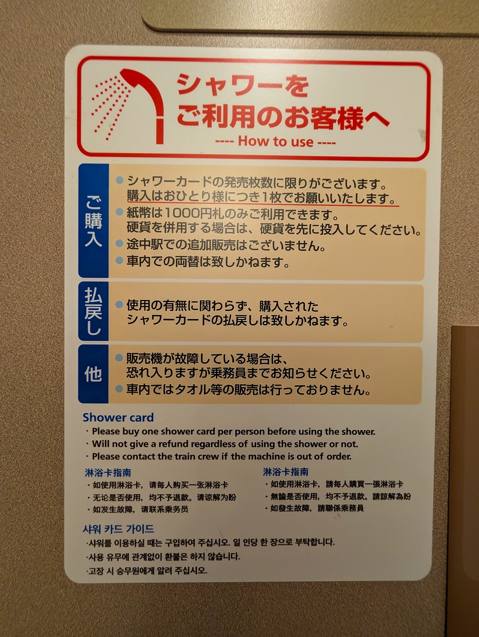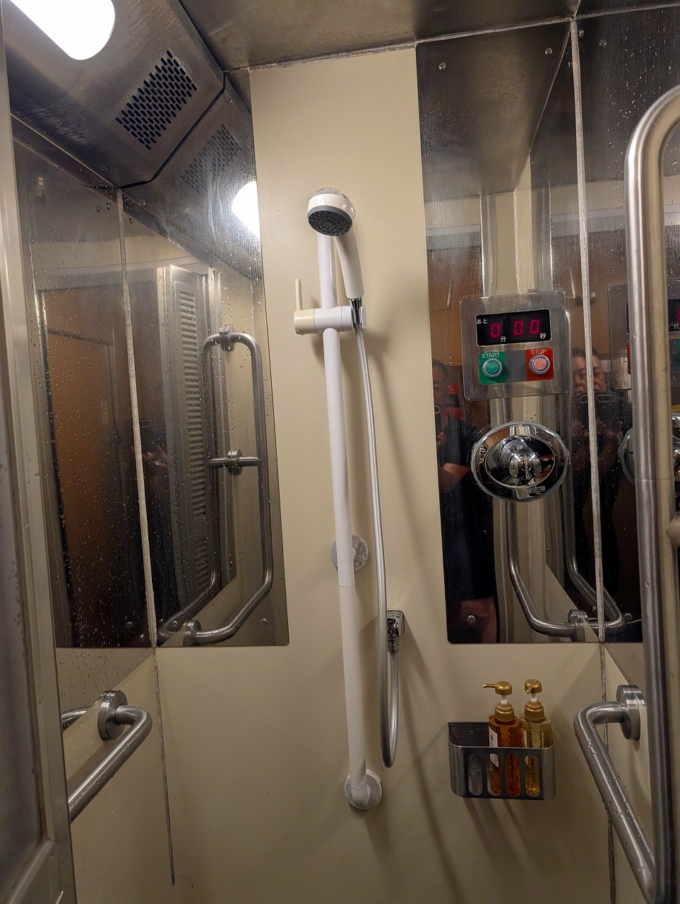 14号車、最後にシャワールームへ向かいました。・・・サッパリしましたー。
