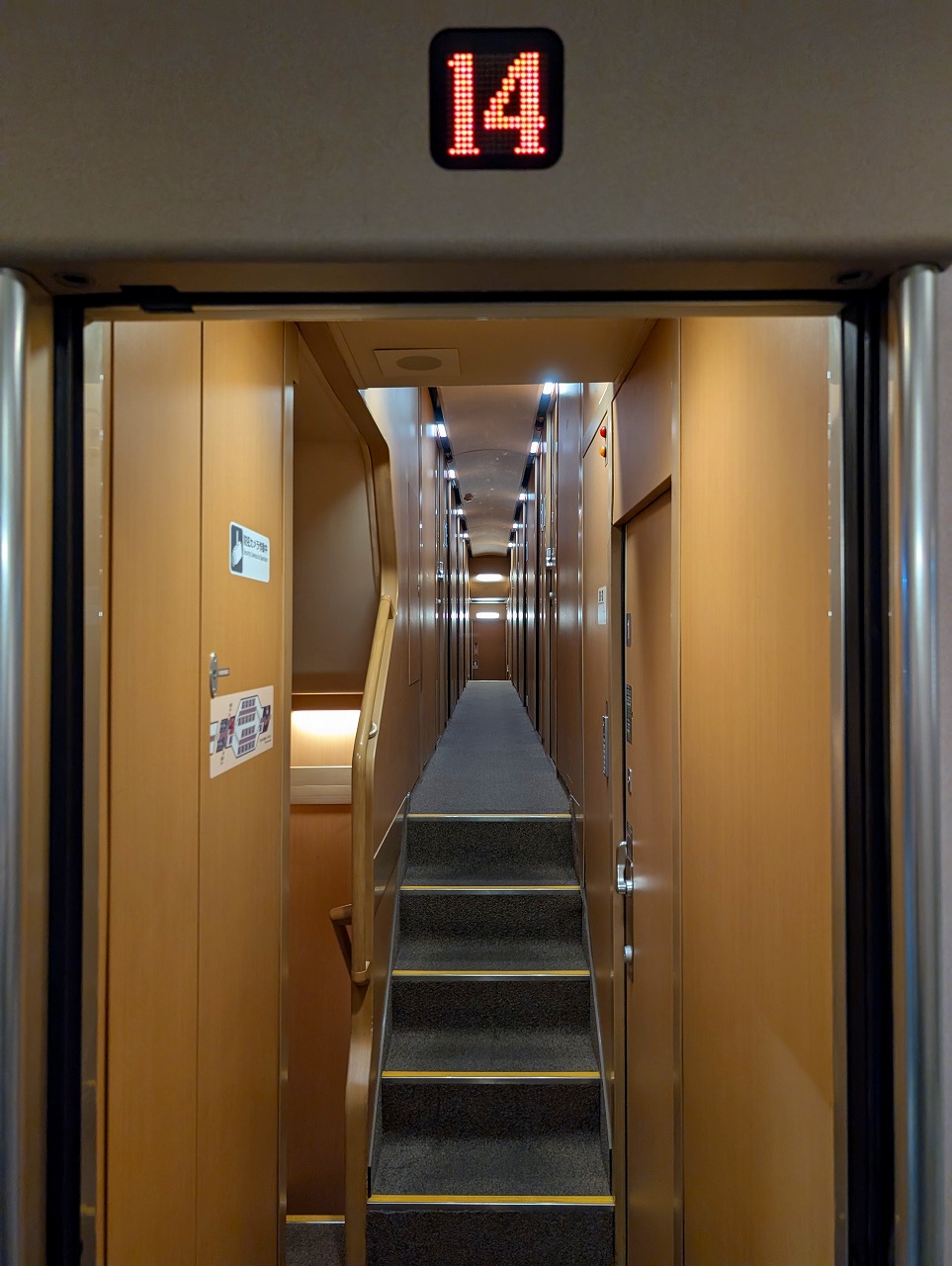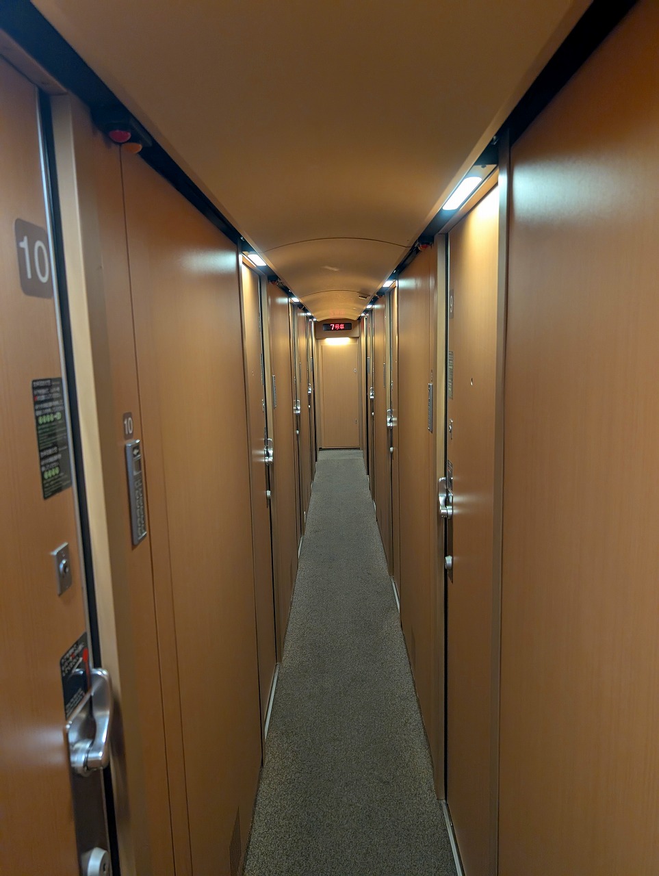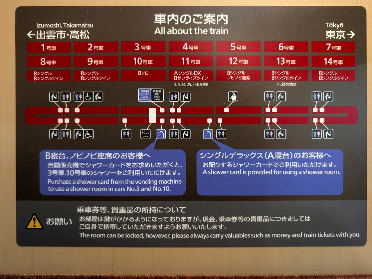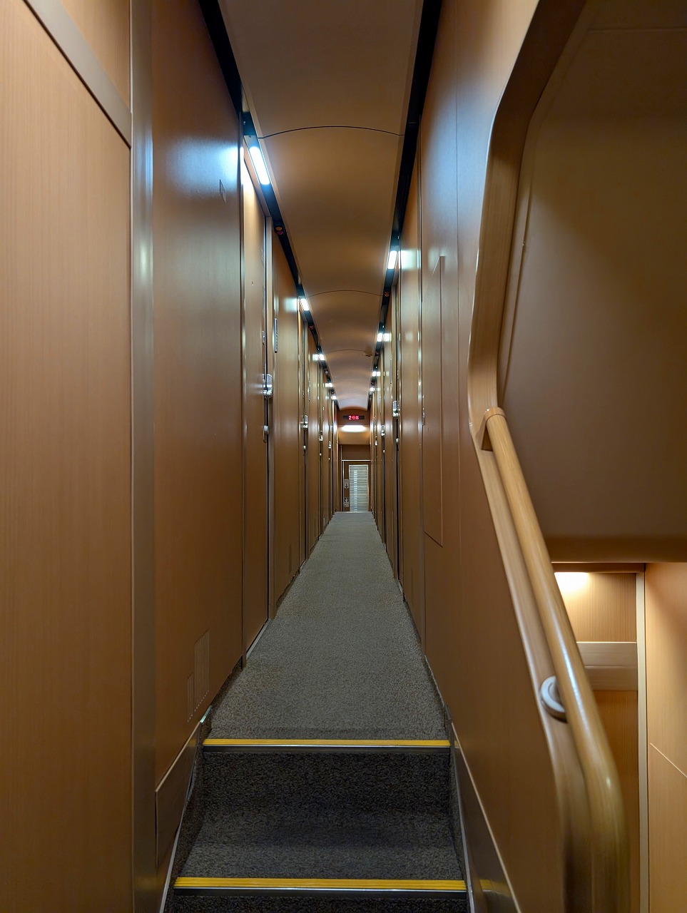 深夜になってから、シャワールーム&車内徘徊を始めました。なので、出雲号8号車から1号車、そのまま1号車から