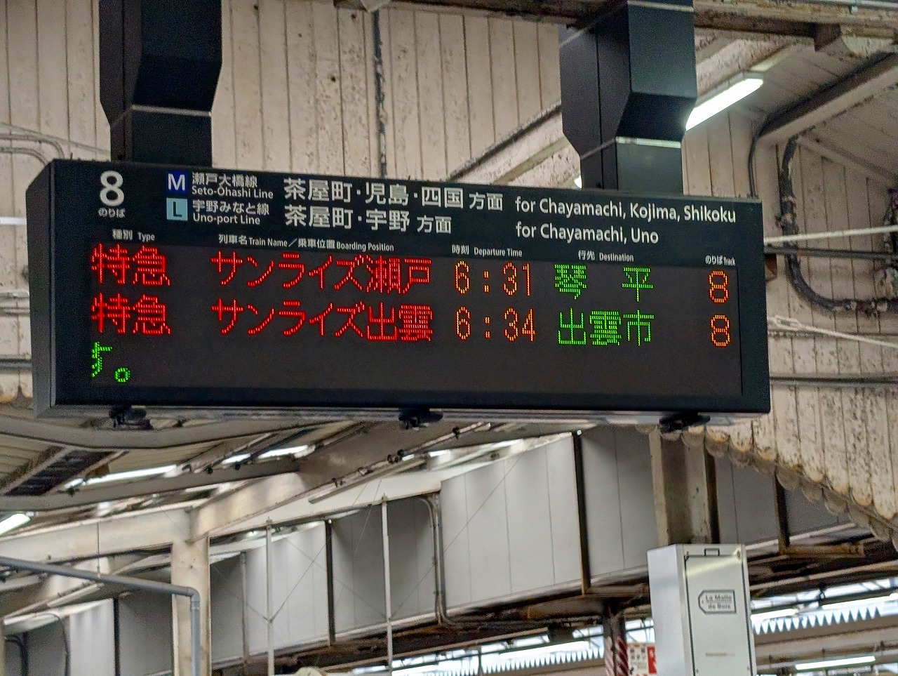 どうせなら今のうちに乗車しておいた方が良いだろうと妻は乗っていない『サンライズ瀬戸・出雲』で!!。それなら乗り換えなく1本で行ける。