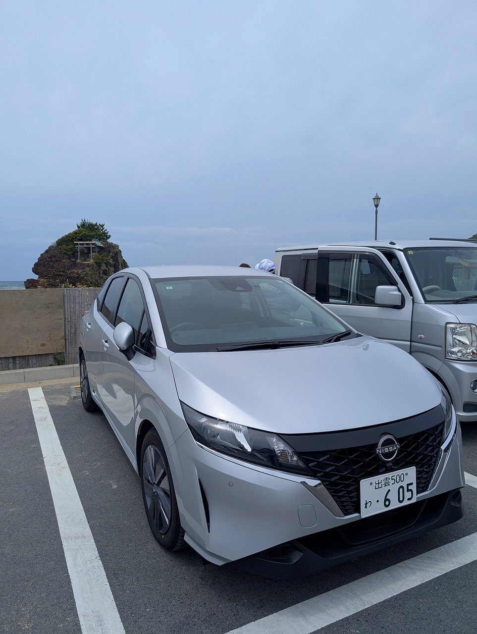 ここからタイムズレンタカー出雲市駅前店(今は閉店)さんへ。借りた車は日産・「NOTE e-power」。