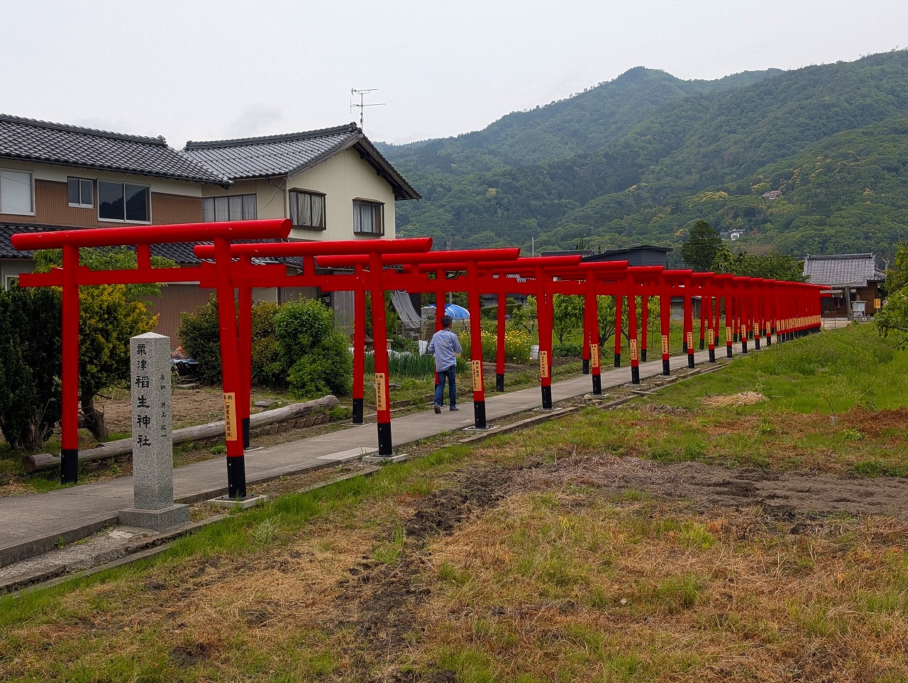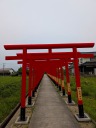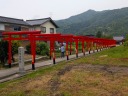 境内内に線路があり、連なっている鳥居の列があります。京都の伏見稲荷の分社だそうです。