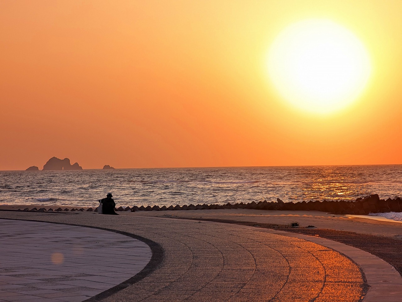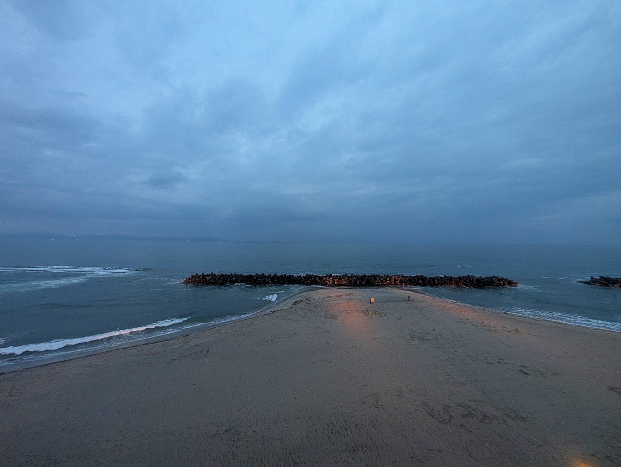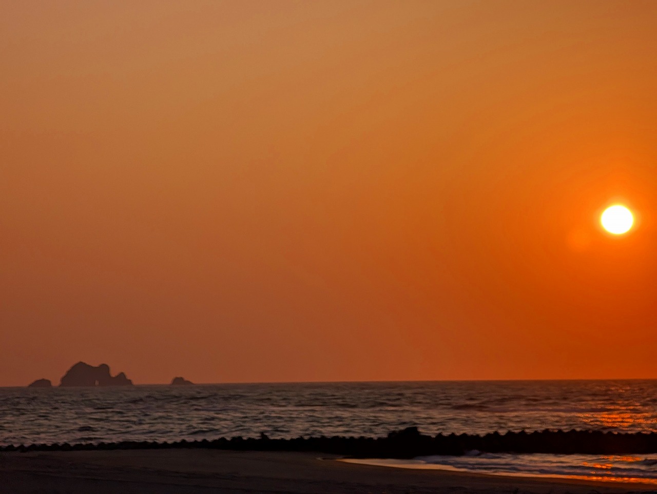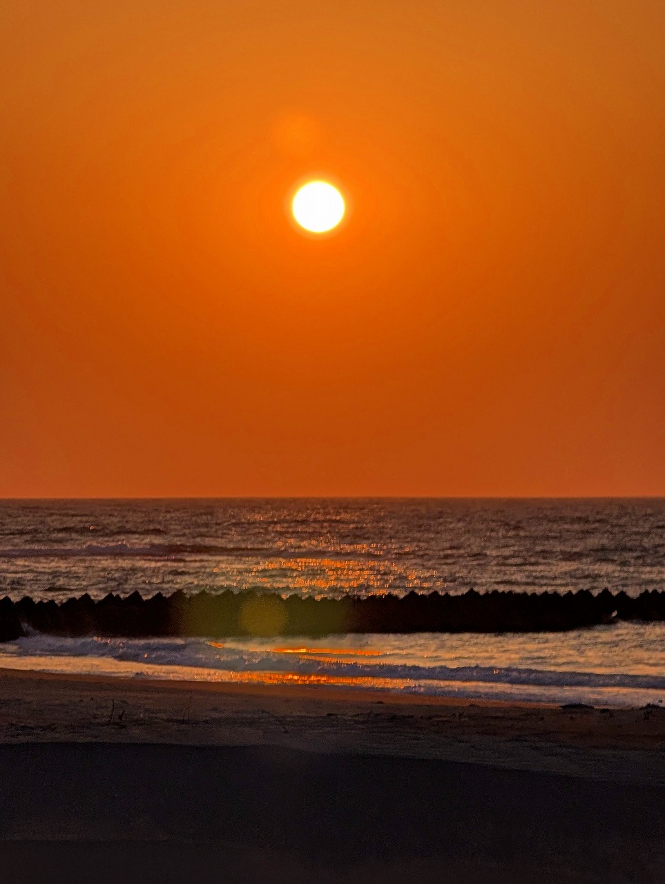 あとは18:25⑯賀露みなと海水浴場へ。夕陽×海がとても綺麗でした。