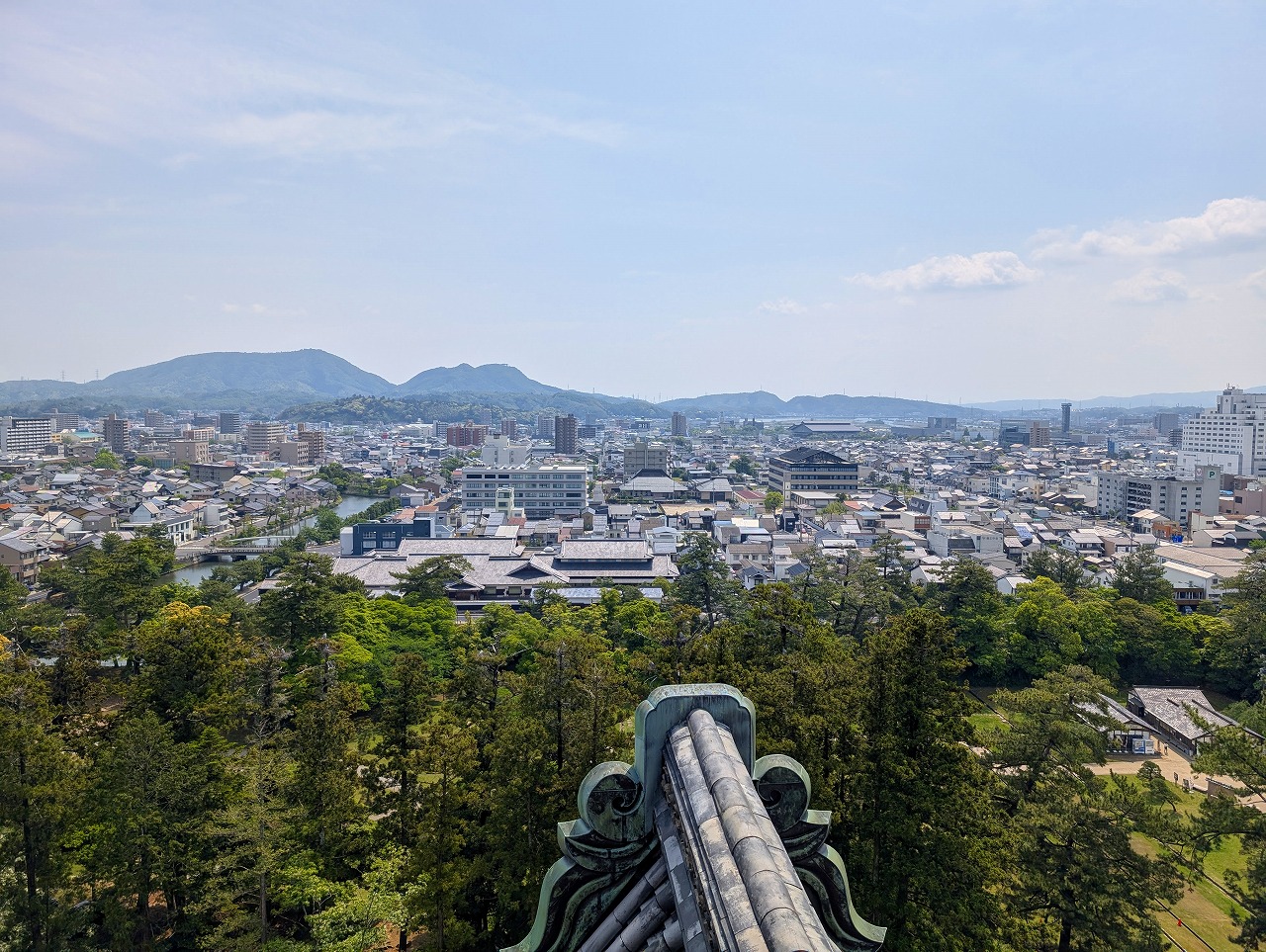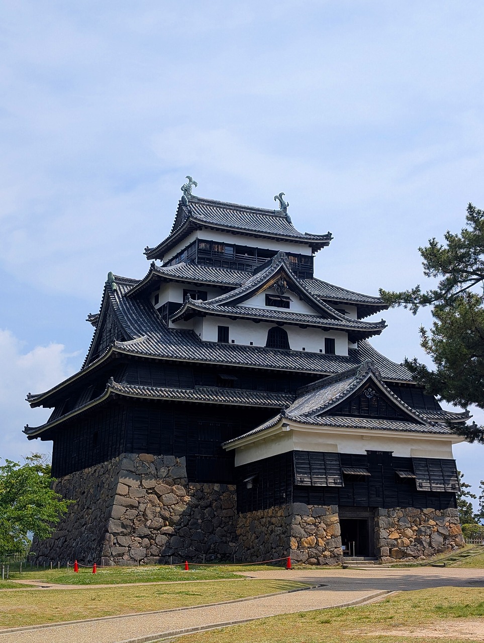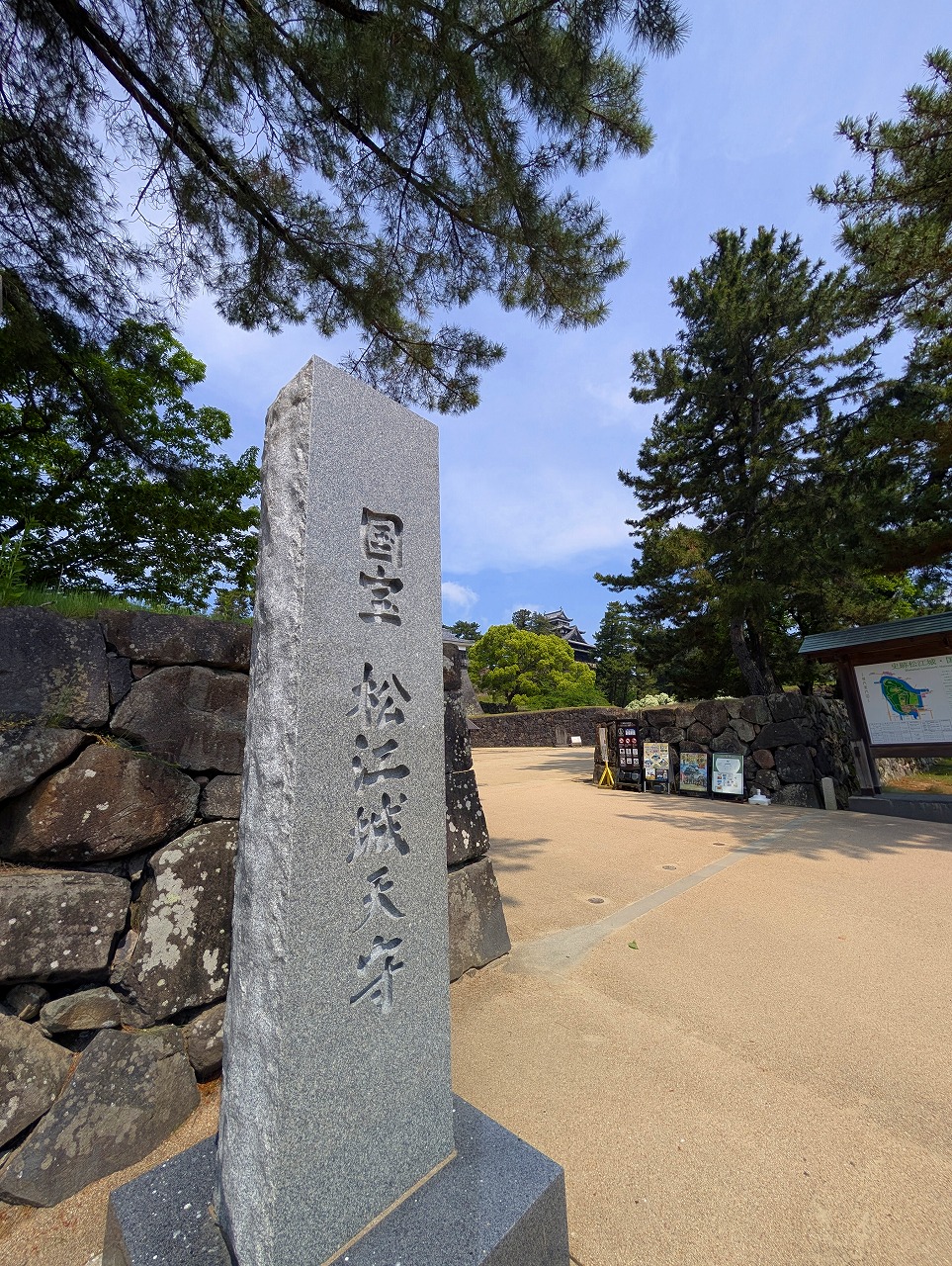 この日は朝から快晴。嬉しい反面暑いです。再び島根県へ戻り、9:47⑦国宝松江城へ。国宝の名に相応しい現存する城郭なので