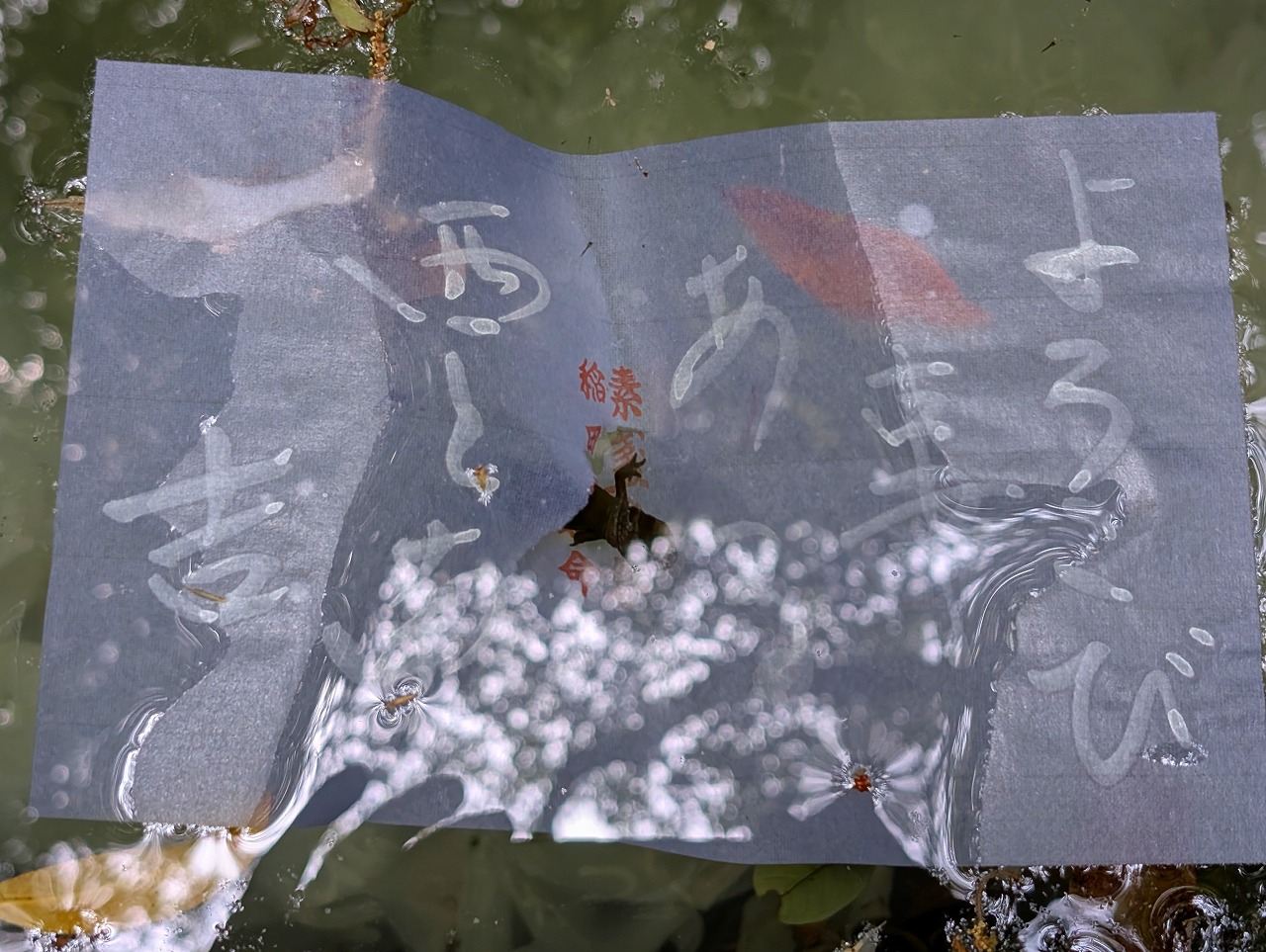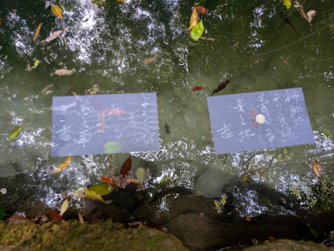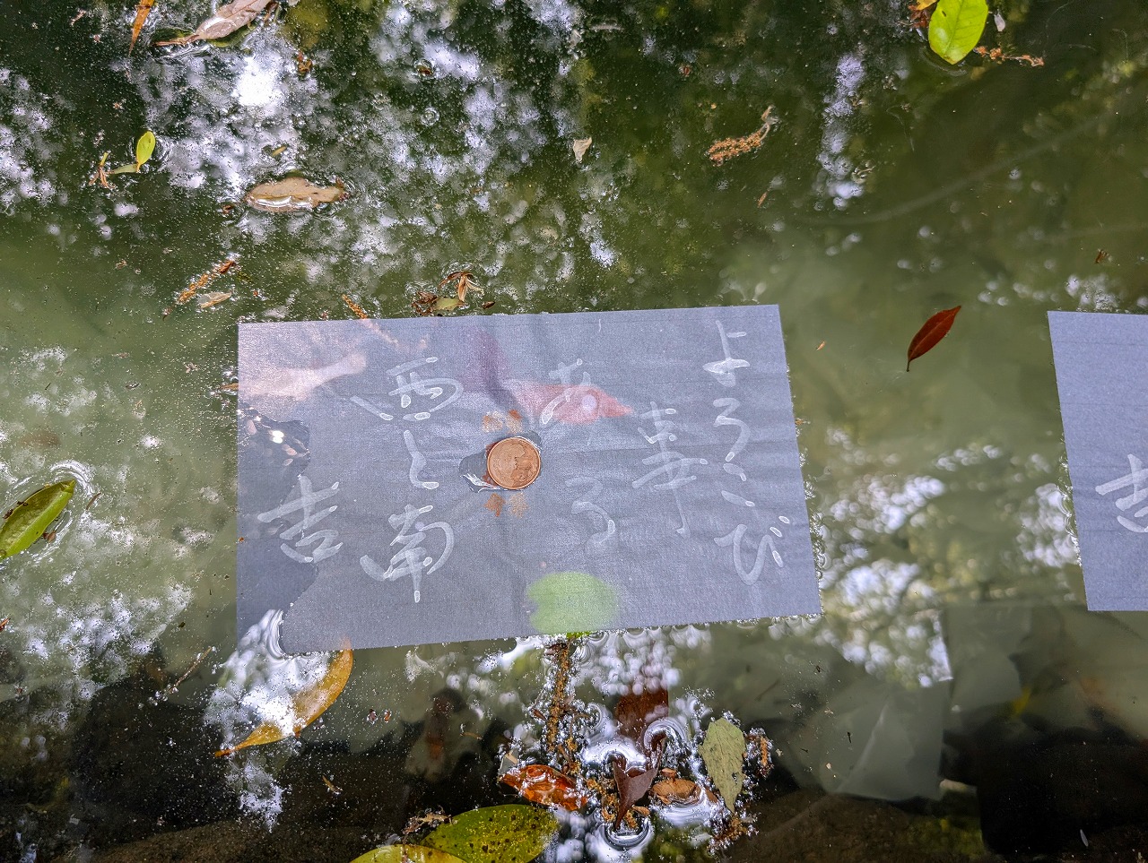 紙が遠くに流れれば遠方の方とご縁有、沈むのが遅くなれば叶うのが遅くなるとの事。