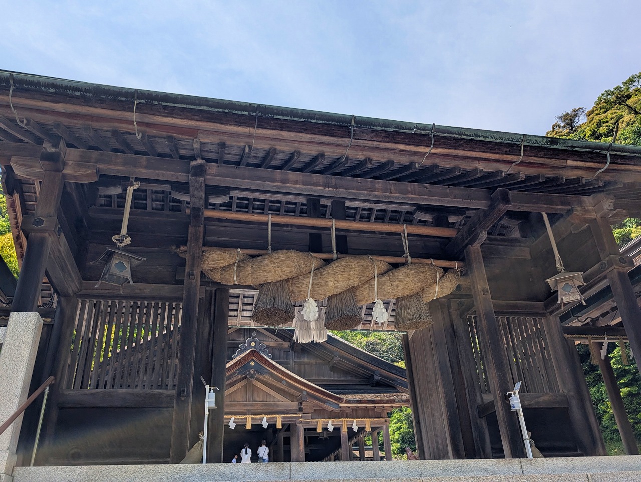 御本殿は「大社造り」と呼ばれる日本最古の神社建築様式で建てられており、国宝に指定されている大変貴重なものです。