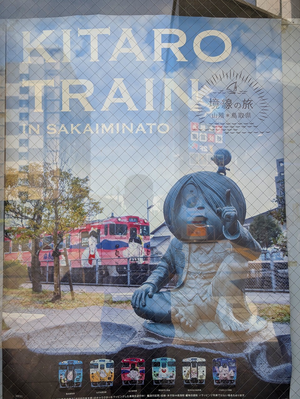 13:36⑩境港駅。鳥取県へ戻り、ゲゲゲの鬼太郎の街へ来ました。ただ、あまり時間的余裕がないので