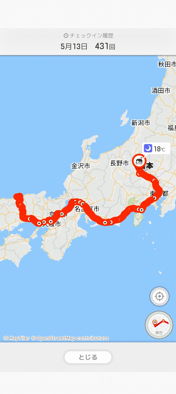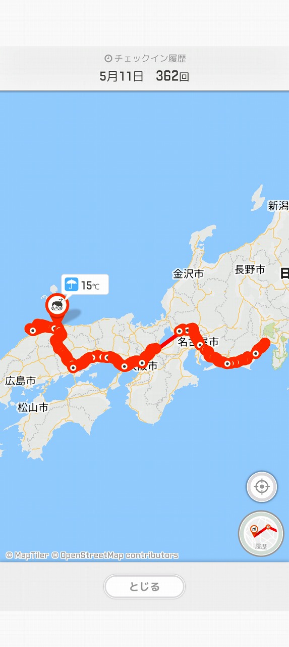 ※あくまで、自分がスマホのアプリ×GPSでアクセスした総数になるので、
